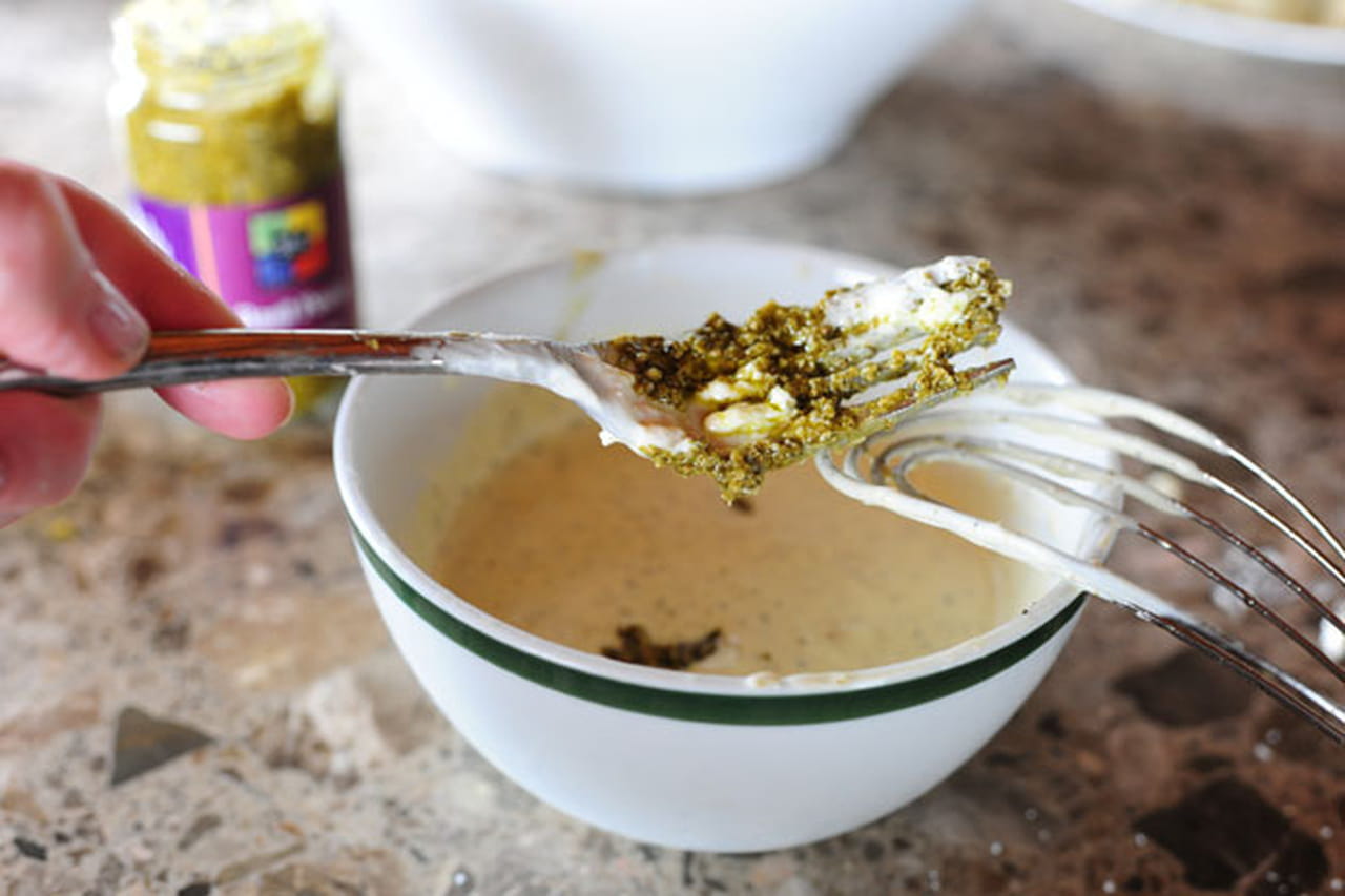 - ثم أضيفي للصوص معلقة كبيرة من البيستو صوص وقلبي .