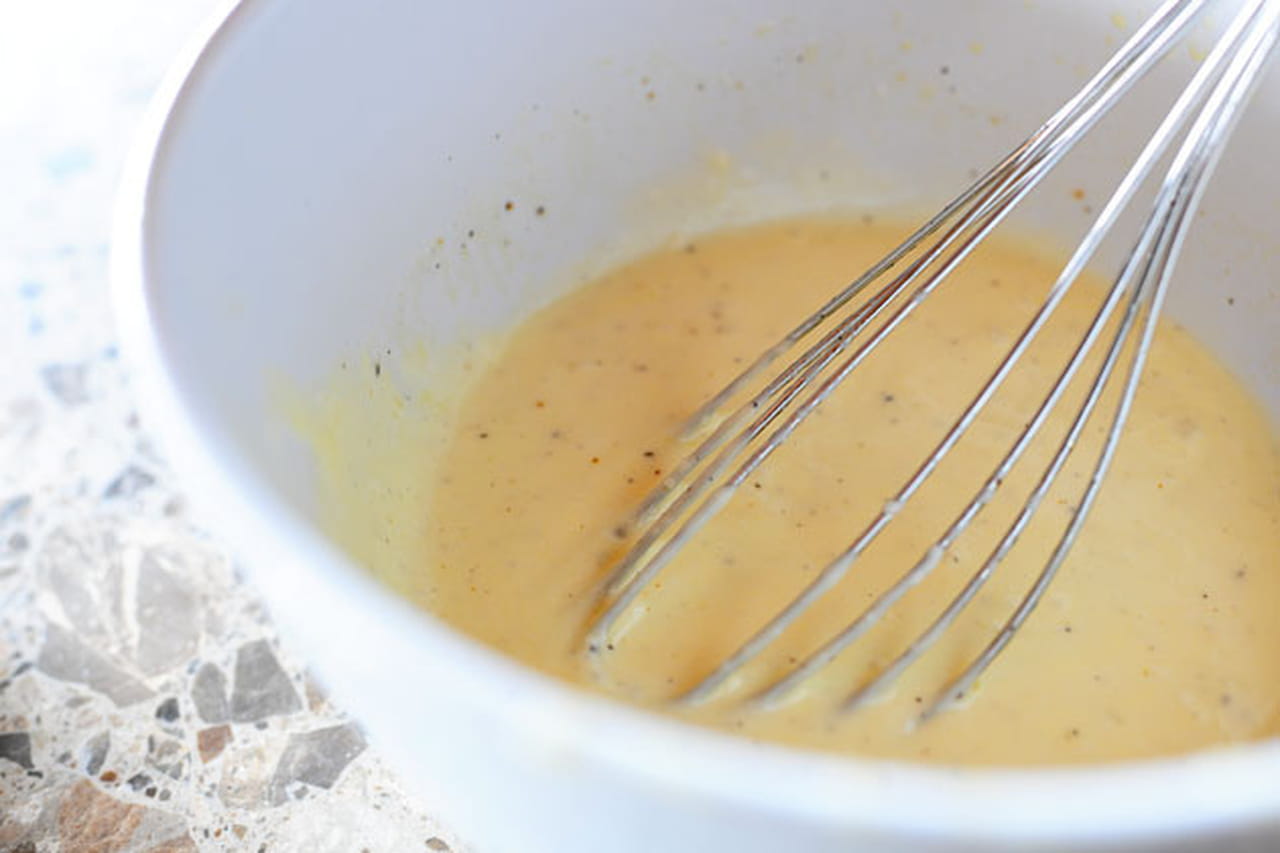 - في طبق صغير اعصري الليمون ثم اضيفي له زيت الزيتون والمايونيز ثم قلبي حتى يندمجوا تماما .